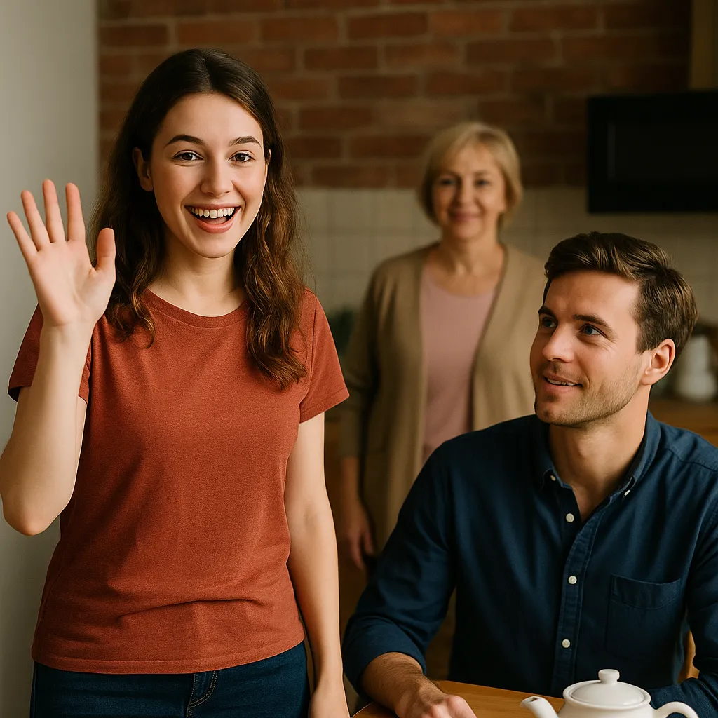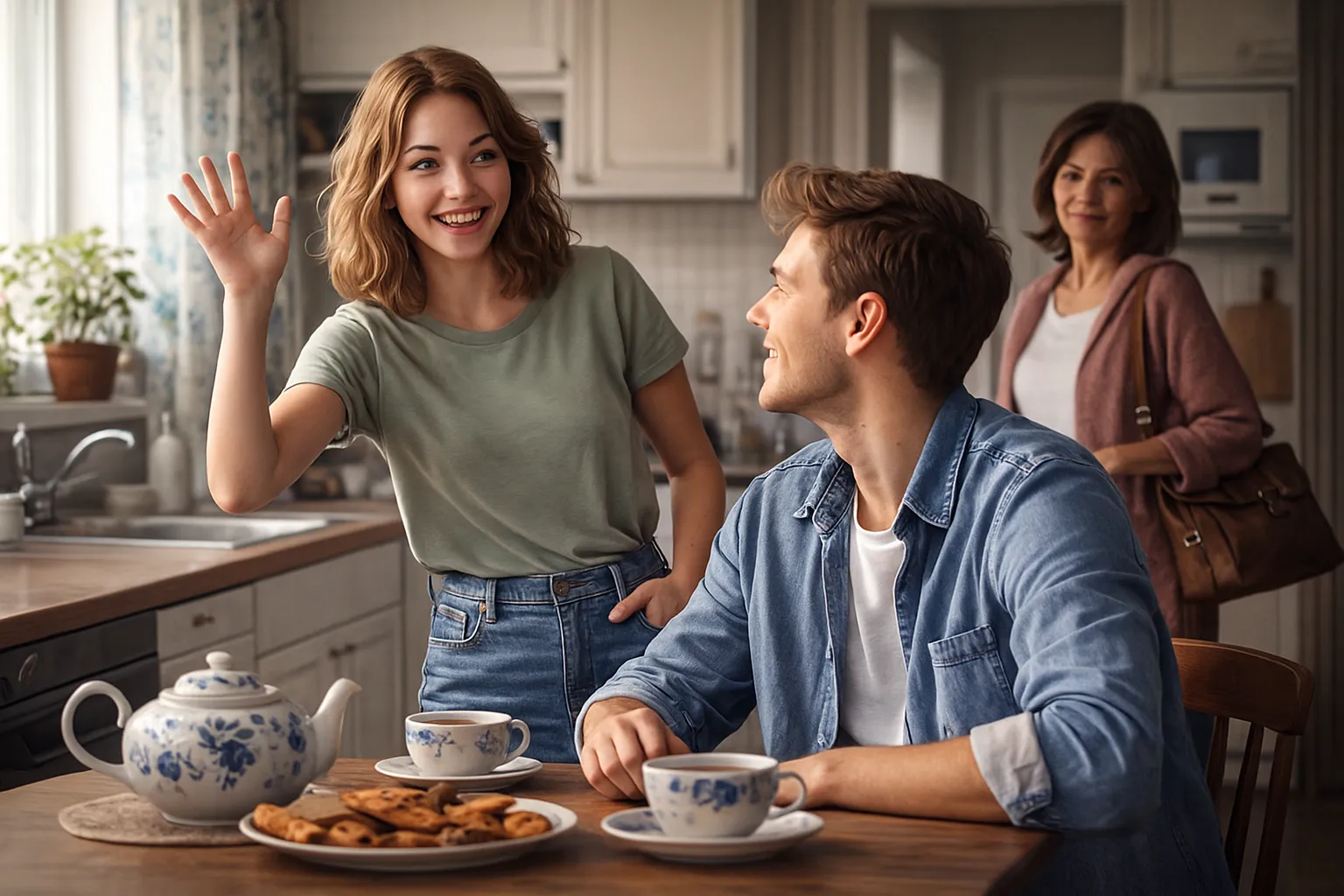Мария зашла на кухню. Она немного удивилась, увидев Сергея, но тут же весело махнула ему рукой.