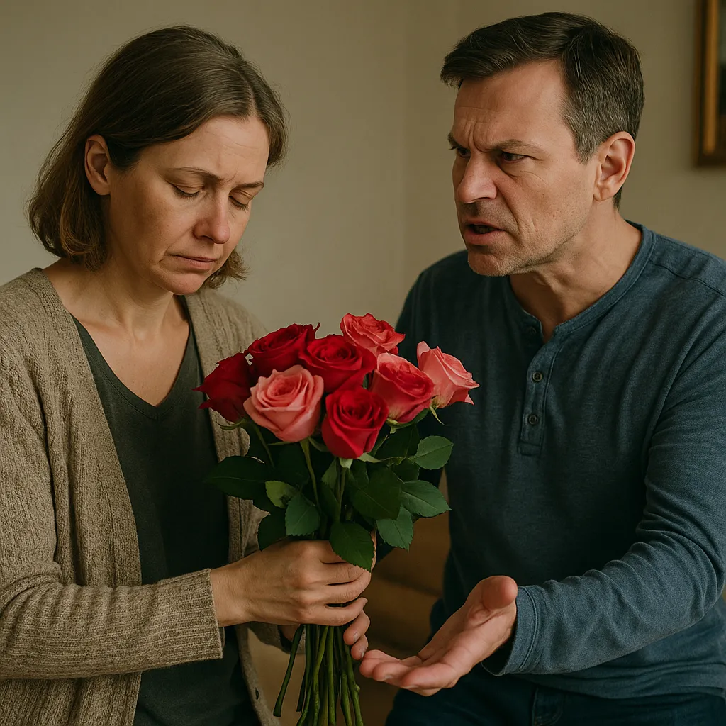 В голове родилась только одна мысль, что Сергей сходил налево, а букет с карточкой – это его извинения.