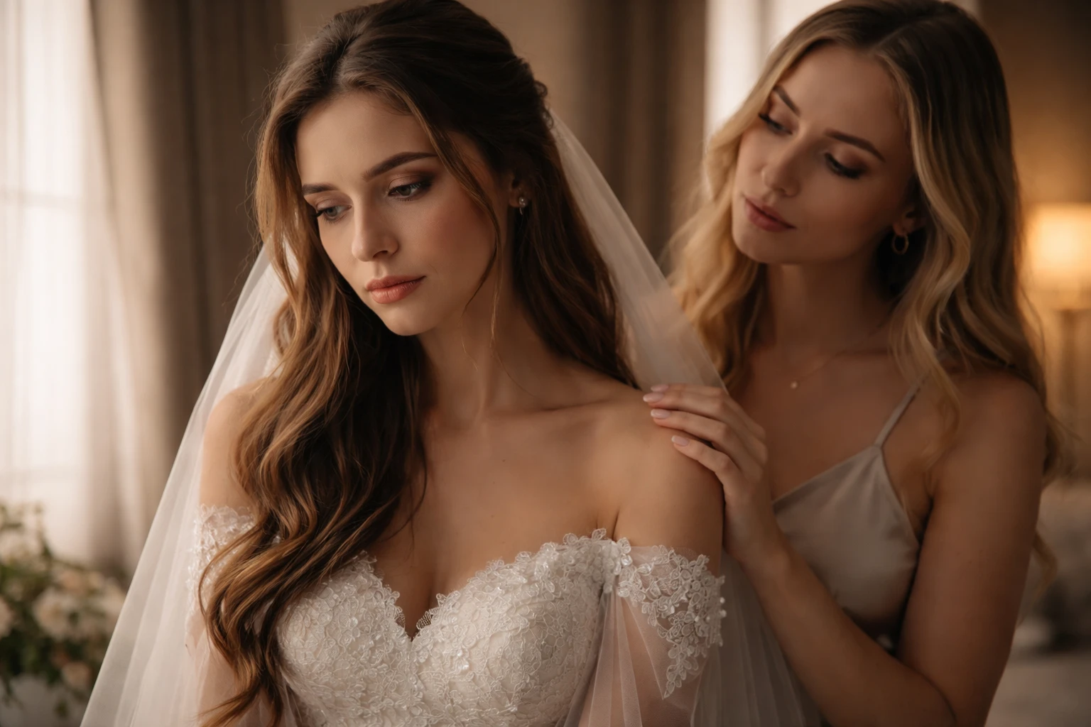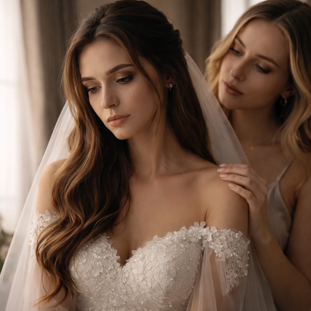Лиля вошла в комнату и замерла на пороге. Перед ней в свадебном наряде стояла Регина – и выглядела потрясающе. Платье идеально подчёркивало её фигуру, а в глазах светилось тихое, почти невесомое счастье. Лиля не смогла сдержать восторга:
