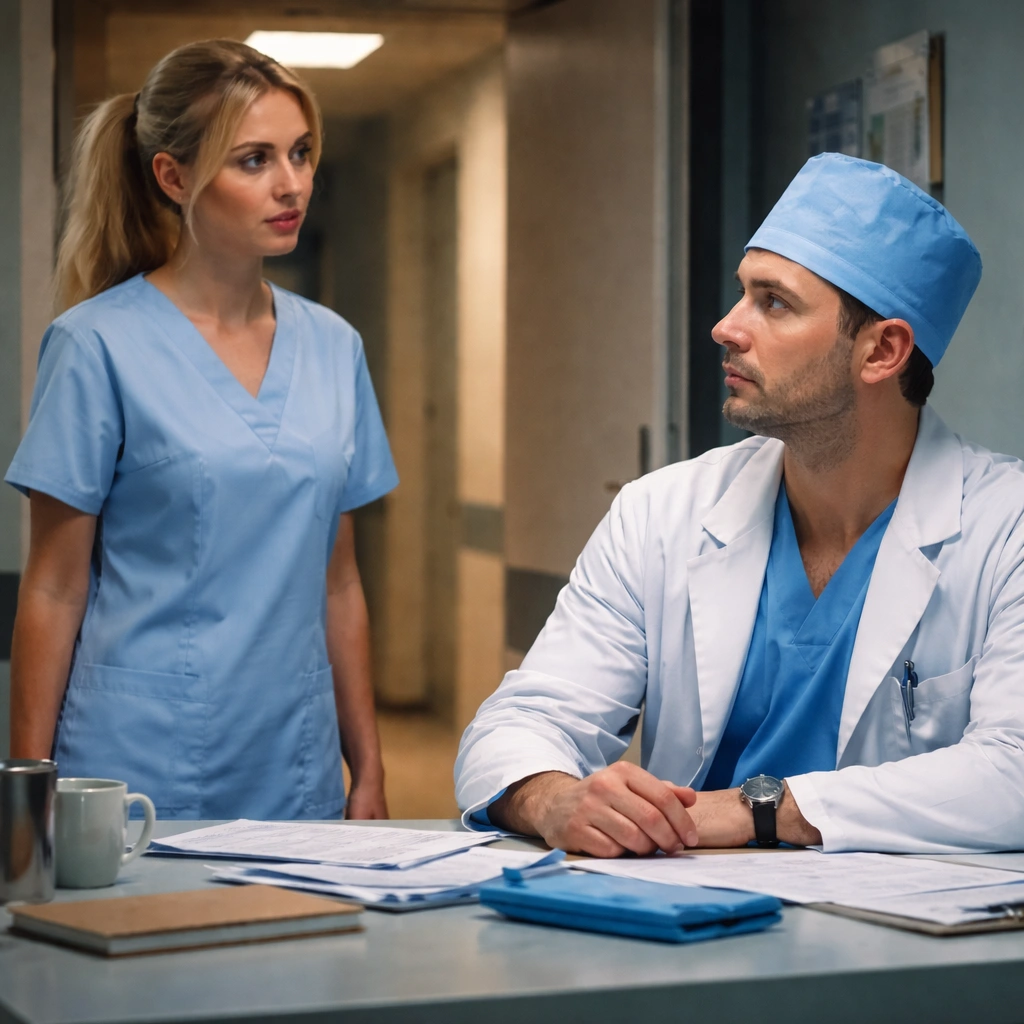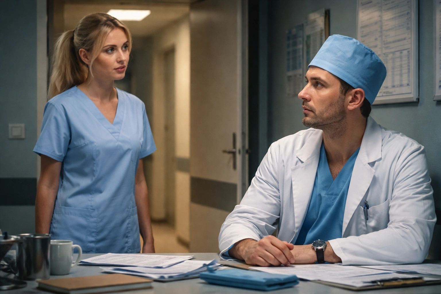Утром в ординаторскую вошёл начинающий хирург Васильев.