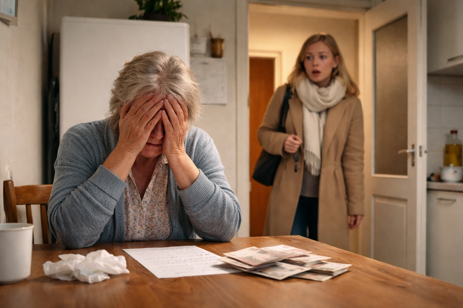 Пенсию принесли, вот… сижу, раскладываю, — бросила она, не оборачиваясь. — У меня, знаешь, система такая. Чтоб порядок был.