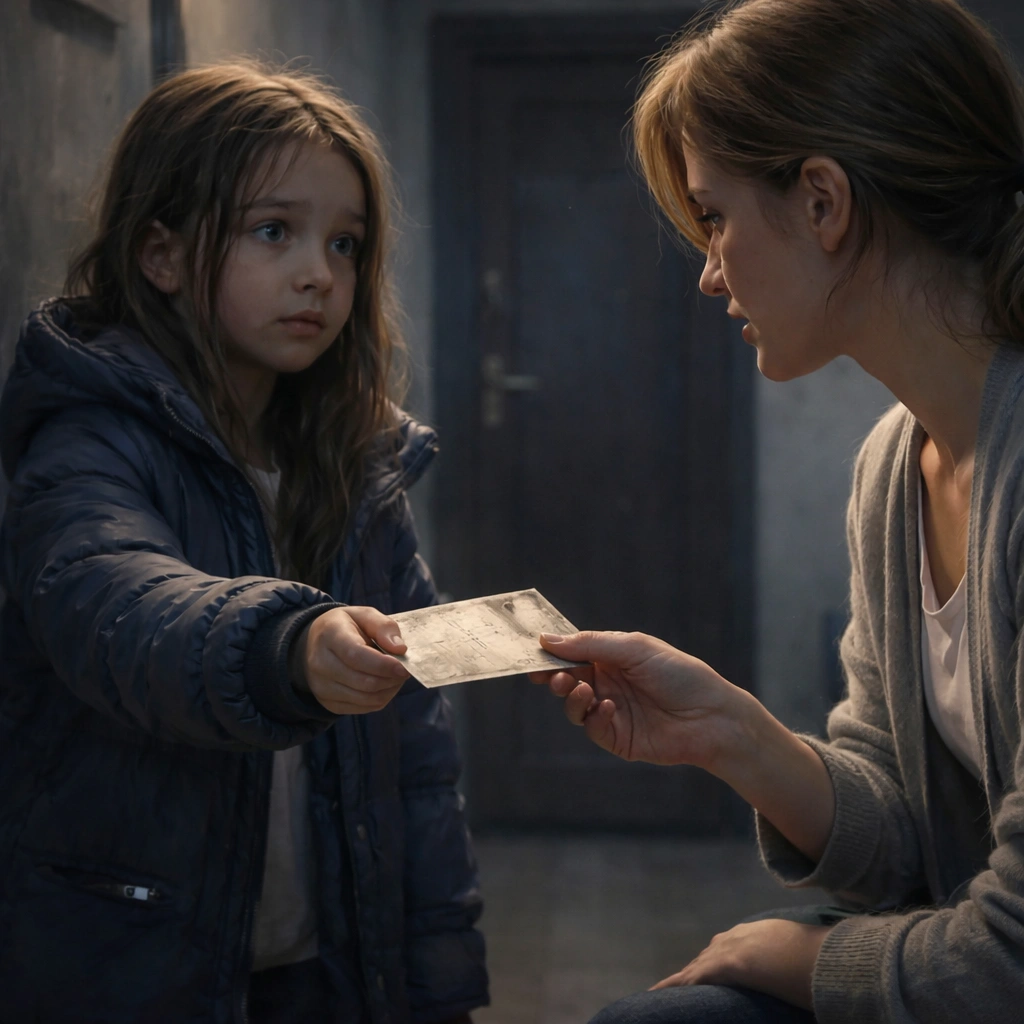 Марина открыла дверь. Девочка смотрела на неё снизу вверх – глаза сухие, но губы дрожали. Она не плакала. Она держалась. И это было страшнее слёз.