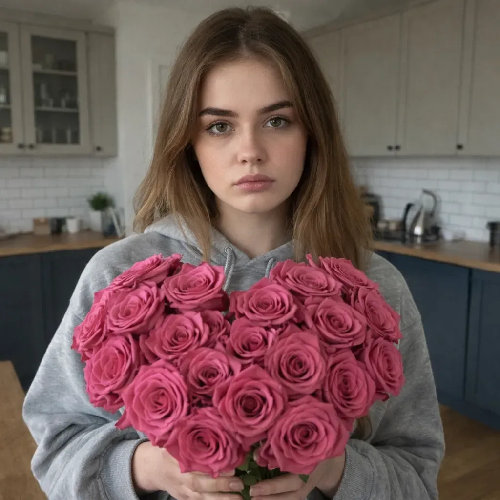 Вышла Света, забрала у мужа семь розочек, чмокнула в щечку и сказала: