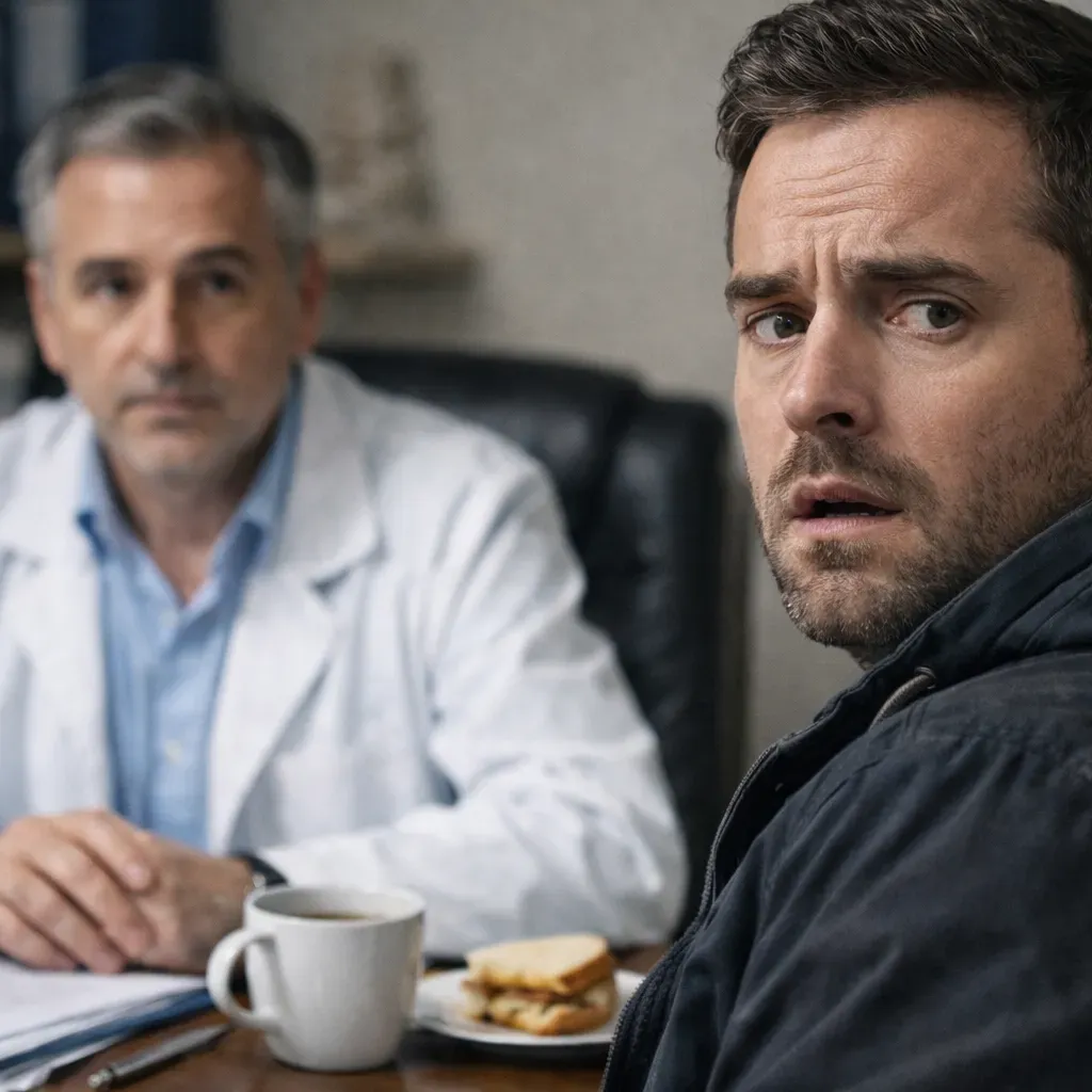 Доктор, спокойный мужчина средних лет с седеющими висками и в слегка помятом белом халате, удивлённо поднял брови, когда Виктор ворвался в кабинет без приглашения. Врач сидел за столом, перебирал какие‑то бумаги и, похоже, обедал прямо на месте – рядом стояла чашка остывшего чая и наполовину съеденный бутерброд.