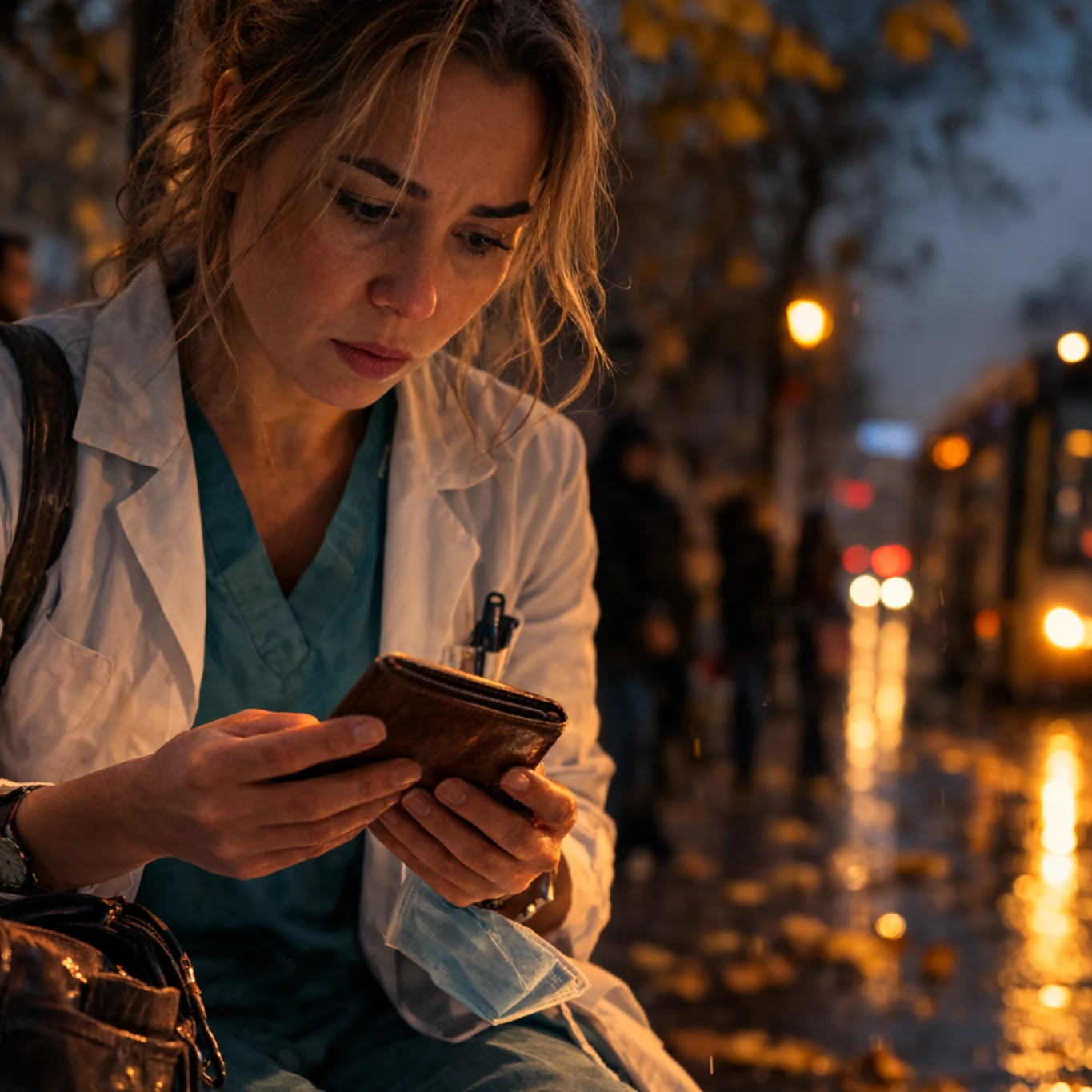 Я подняла кошелёк машинально. Смена закончилась час назад, ноги гудели после двенадцати часов в операционной, и думать хотелось только о горячем душе. Две сложные операции, одна за другой. Перелом бедра у пожилой женщины, вывих плеча у подростка. Обычный день хирурга-травматолога районной больницы.