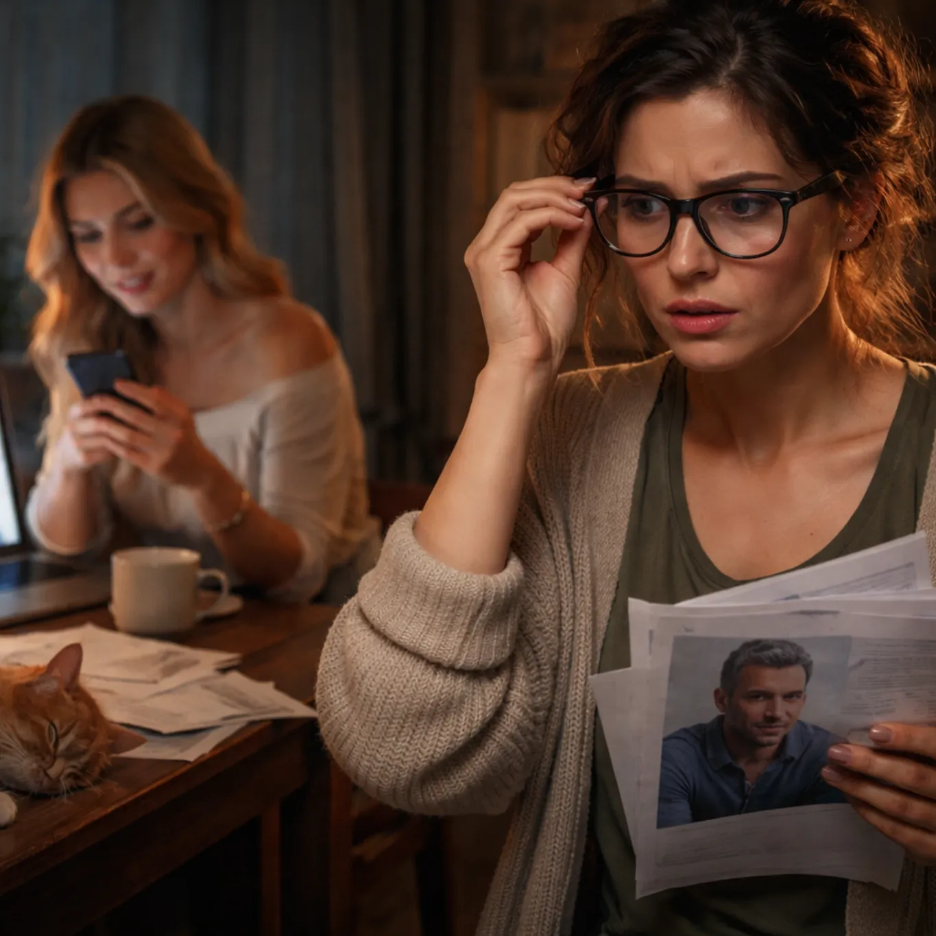 Сначала Маша слышала только обрывки фраз. Оля играла гениально. Она цитировала письма Маши, смеялась над её шутками. Но через полчаса… через полчаса игра закончилась. Маша заметила, как Оля замолчала, слушая Андрея. Как она вдруг поправила волосы жестом, которого Маша никогда у неё не видела. Как её взгляд стал… настоящим.