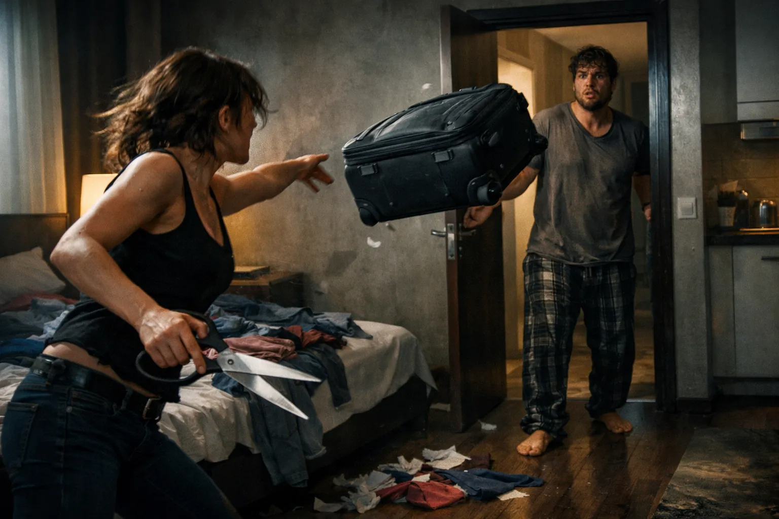 И тут он увидел, что она бросает в чемодан его вещи.