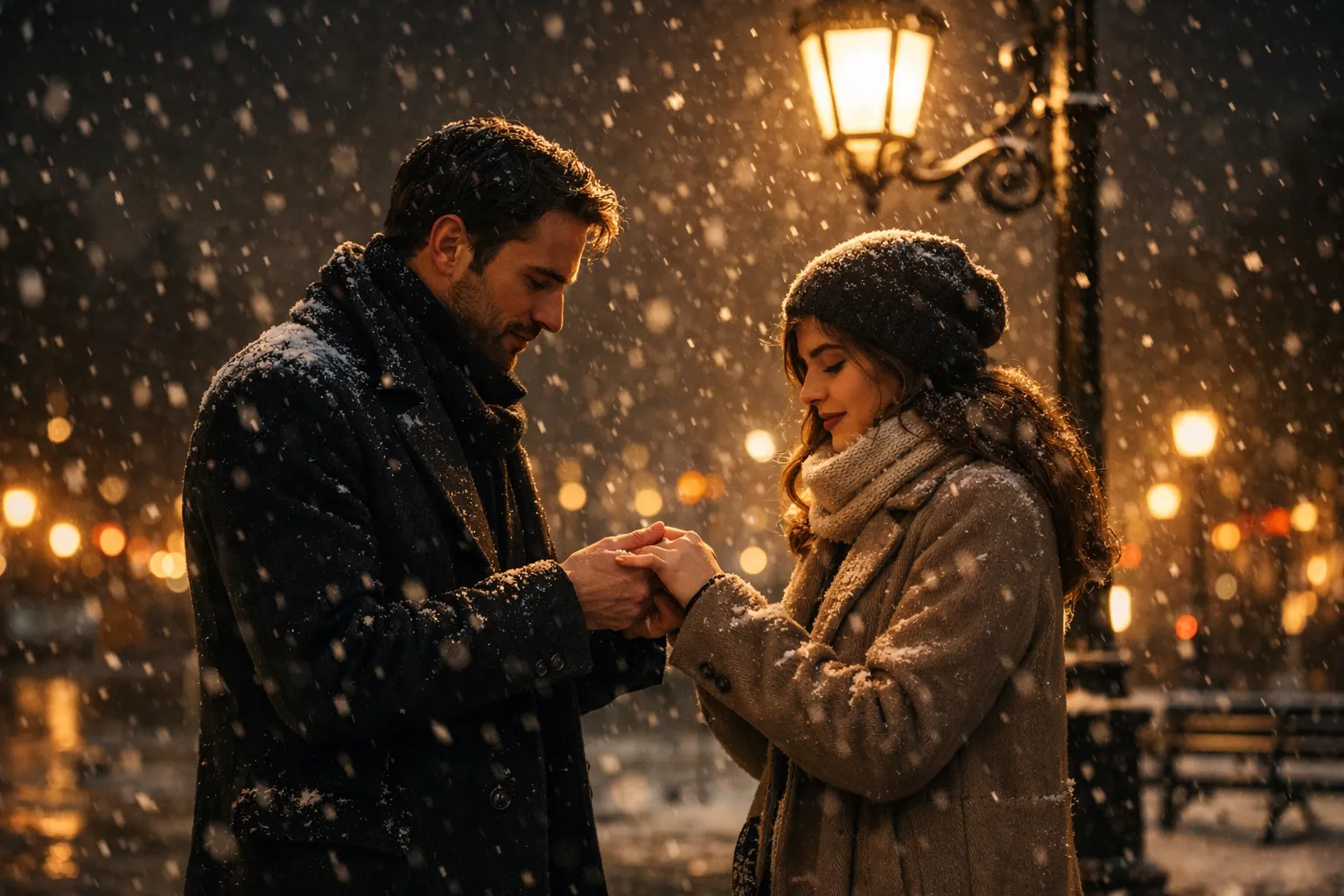 Музыка, полумрак, бокалы вина. Он проводил её до такси. Стояли под фонарем, и снег медленно оседал на его пальто. Она замерзла. Он снял перчатку и на секунду взял её за руку.