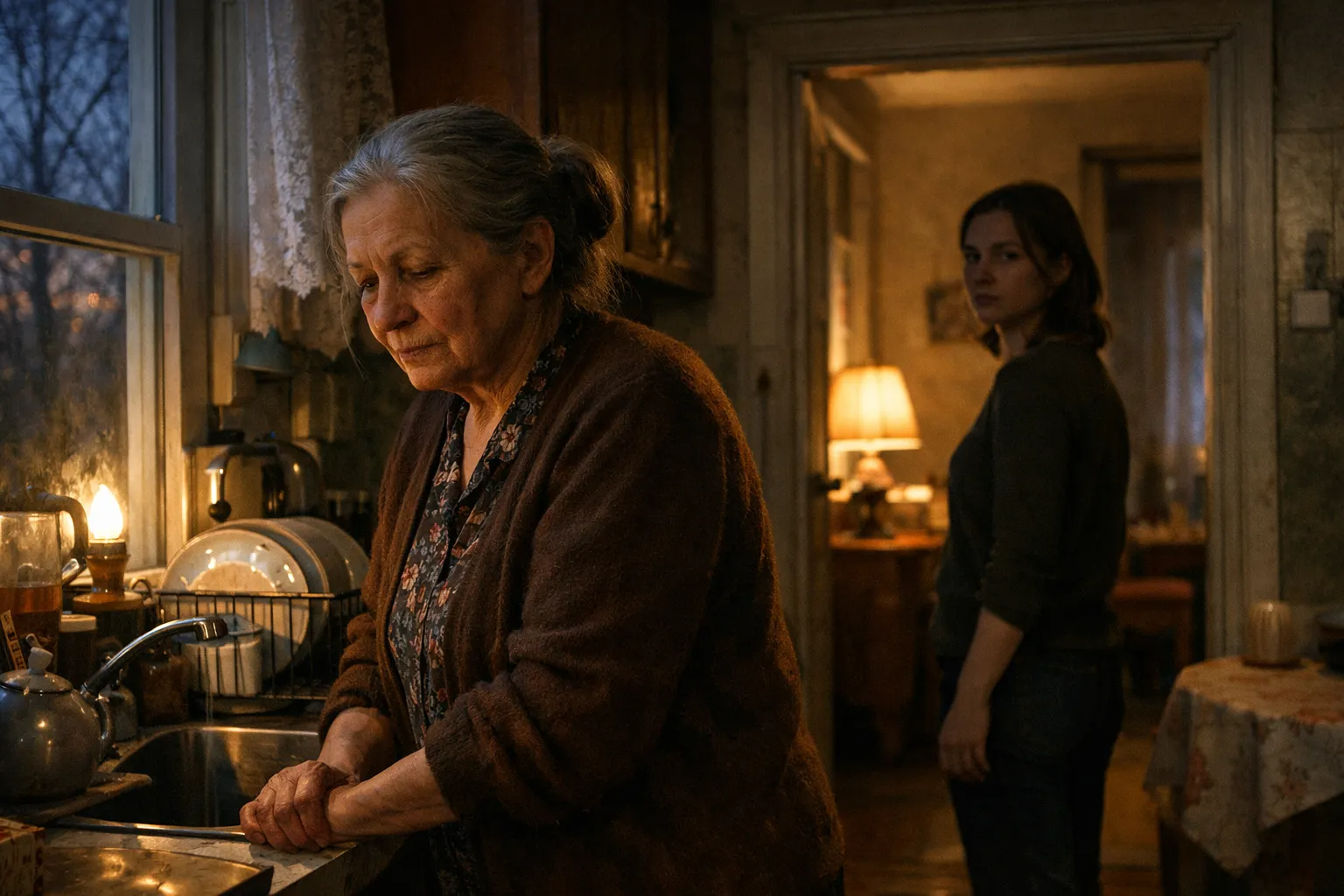 Когда уходили, она помогла детям одеться в прихожей. Потом, пока Михаил завязывал младшему шнурки, повернулась к невестке и сказала тихо — быстро, пока не передумала: