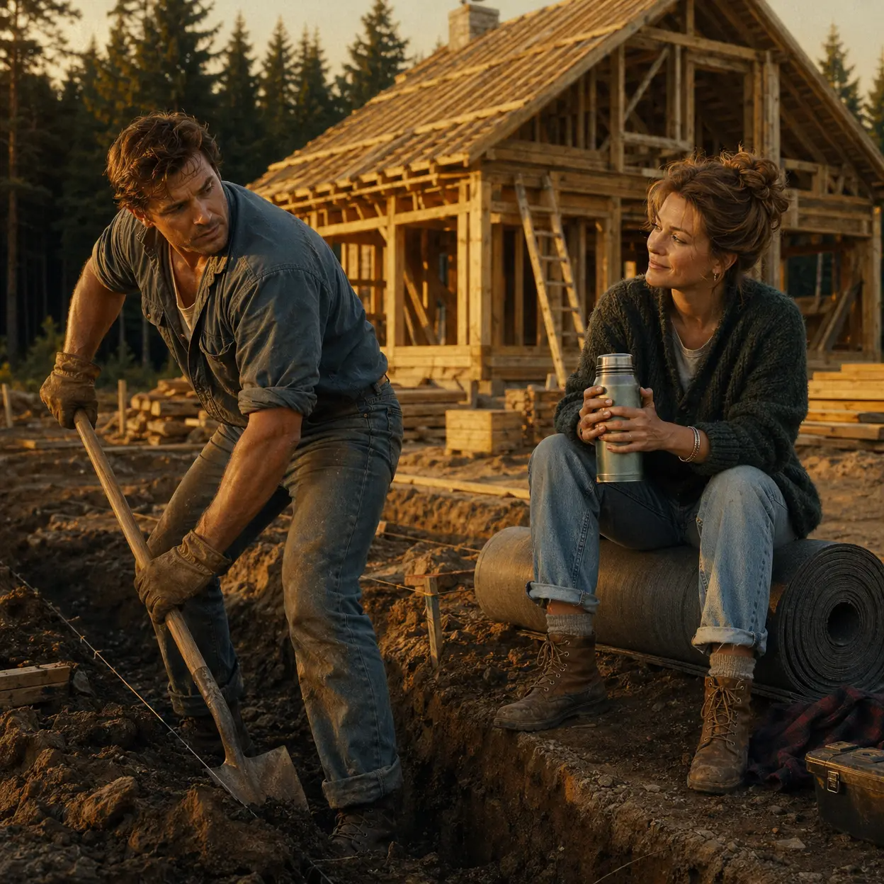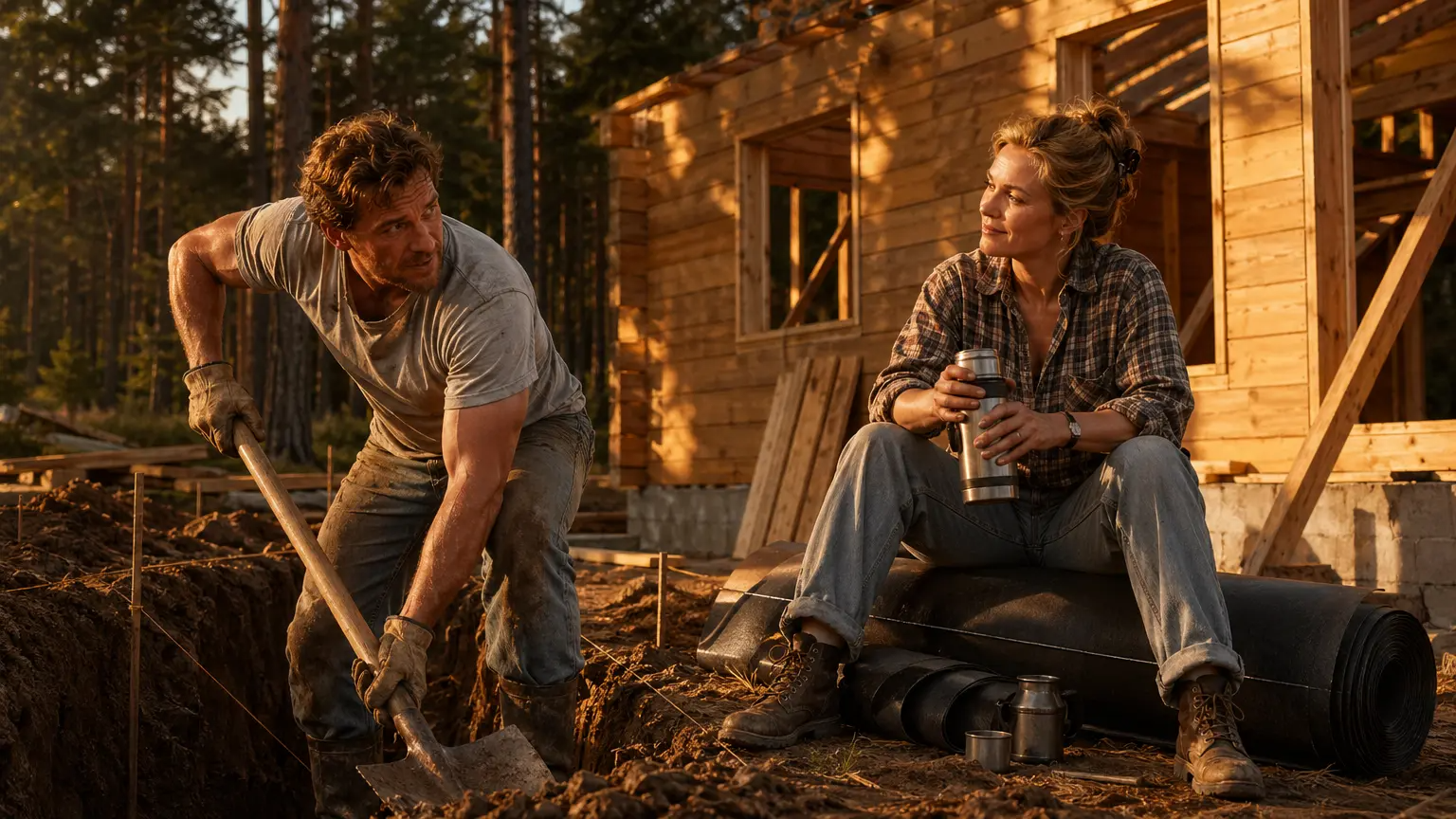 По субботам они ездили на участок. Вера привозила термос и бутерброды. Сидела на свернутом рулоне рубероида, смотрела, как он копает траншею под фундамент, и говорила: