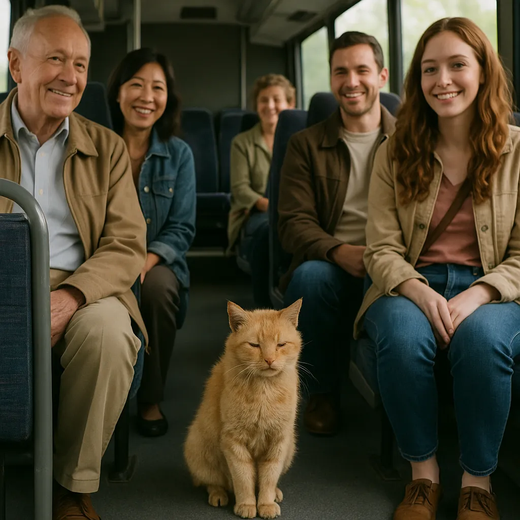 Никаких скандалов, криков и споров больше не было, а один пенсионер в шутку предъявил своё пенсионное удостоверение не водителю, а коту. И тот совершенно серьёзно уткнулся носом в маленькую книжицу, а потом посмотрел на пенсионера и одобрительно мяукнул.