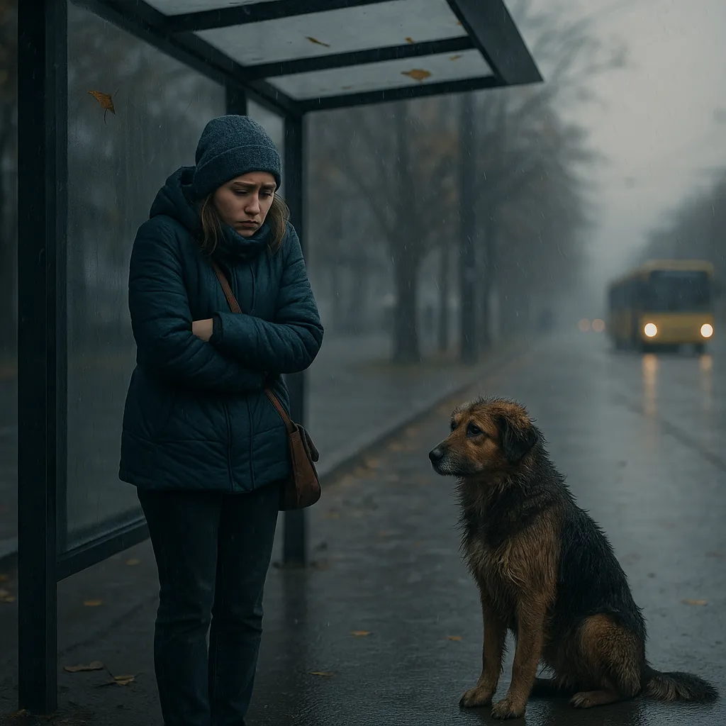 Вдруг под козырёк зашёл мокрый и грязный бродячий пёс. Он пугливо посмотрел на Юлю, раздумывая, уйти или остаться. Она отвела глаза, а когда снова посмотрела на него, увидела, что он сидит поодаль.