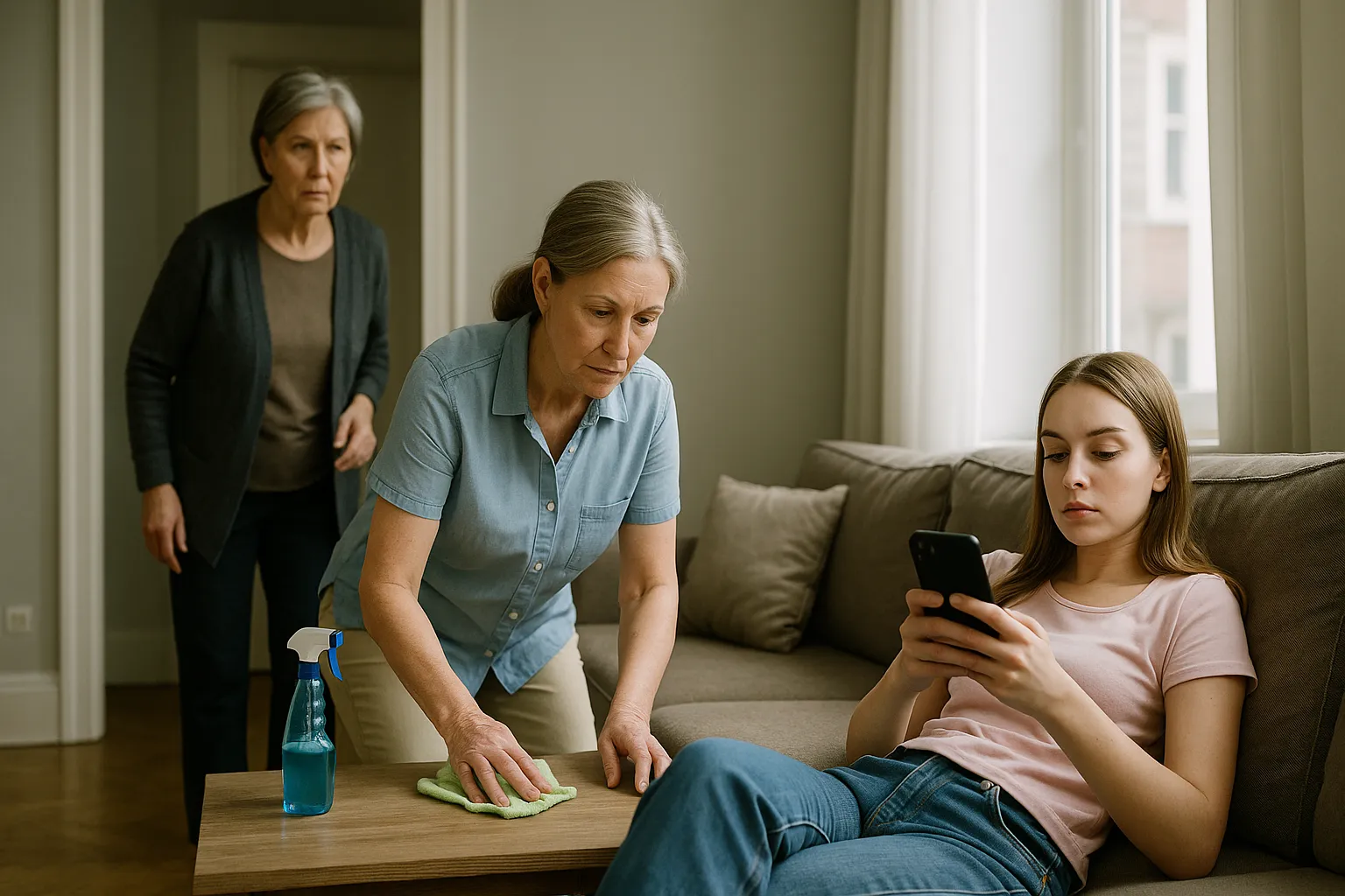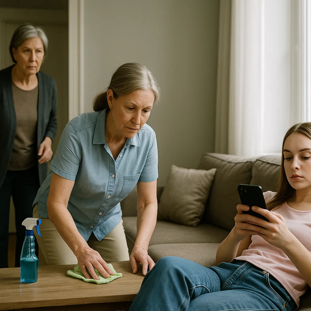 Это произошло после того, как свекровь, нагрянувшая в гости без предупреждения, обнаружила в квартире невестки пятидесятилетнюю домработницу. Которая вытирала пыль и мыла полы, пока двадцатилетняя ко..была-невестка лежала на диване, уткнувшись в телефон.