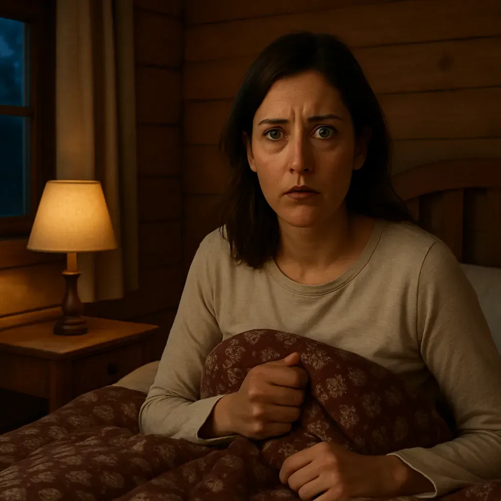 Свет в спальне казался слишком ярким, режущим глаза. Снизу доносился тихий шум работающего телевизора, который она забыла выключить.