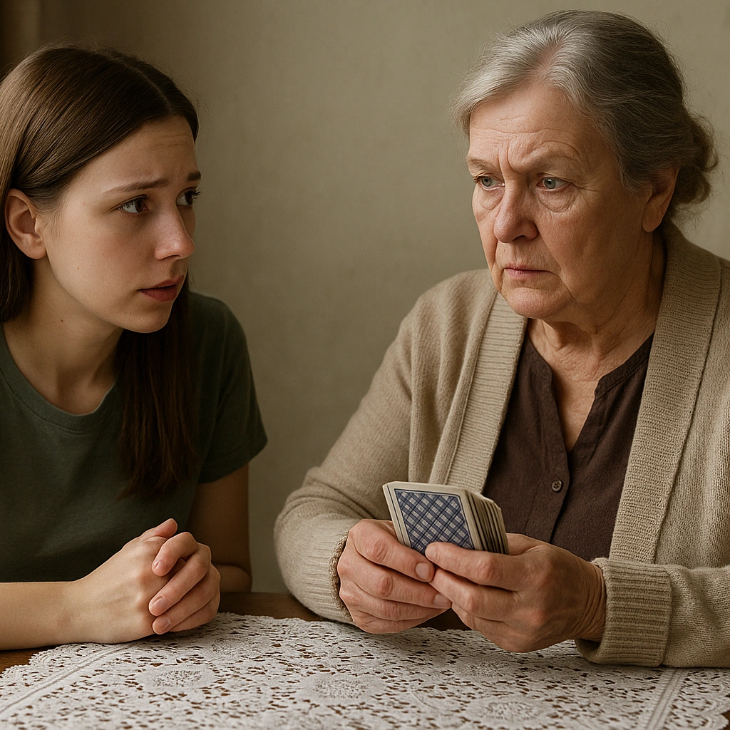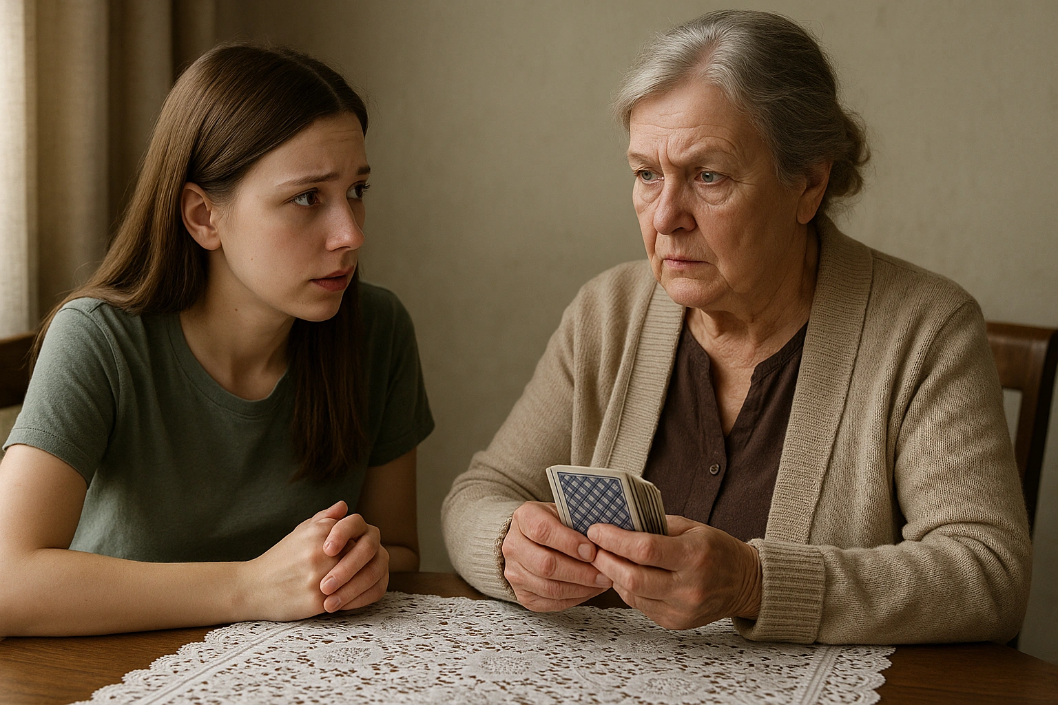 Галина Васильевна села напротив внучки, расправила ладонью белую кружевную скатерть. Достала из упаковки колоду и стала перетасовывать карты.