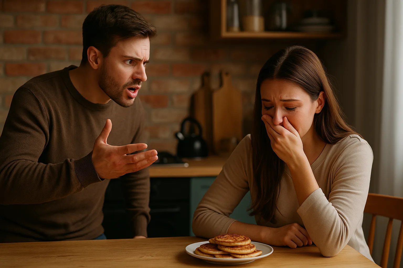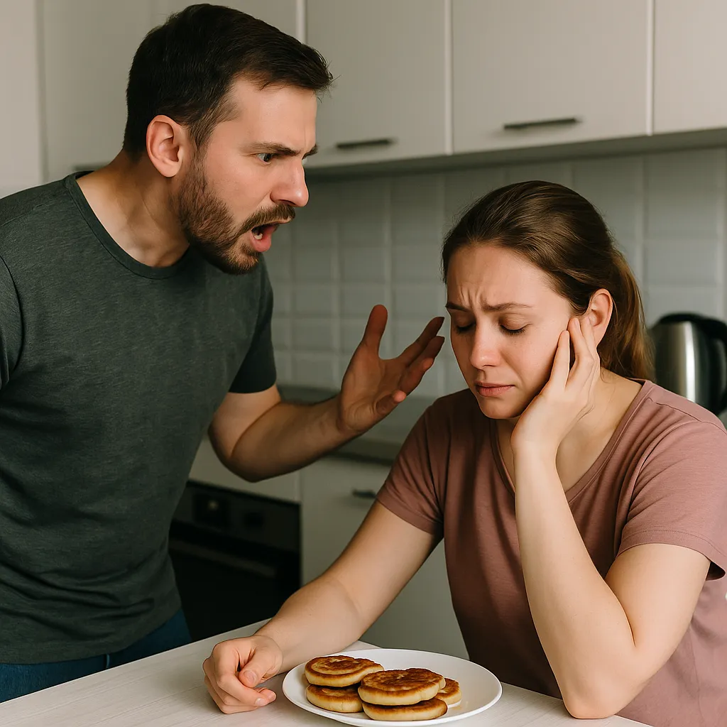 — Ты с ума сошла? – воскликнул муж. — Мы же договорились, что ты садишься на диету. Оладьи – это совсем не диетическая еда! Юля, ты что творишь!