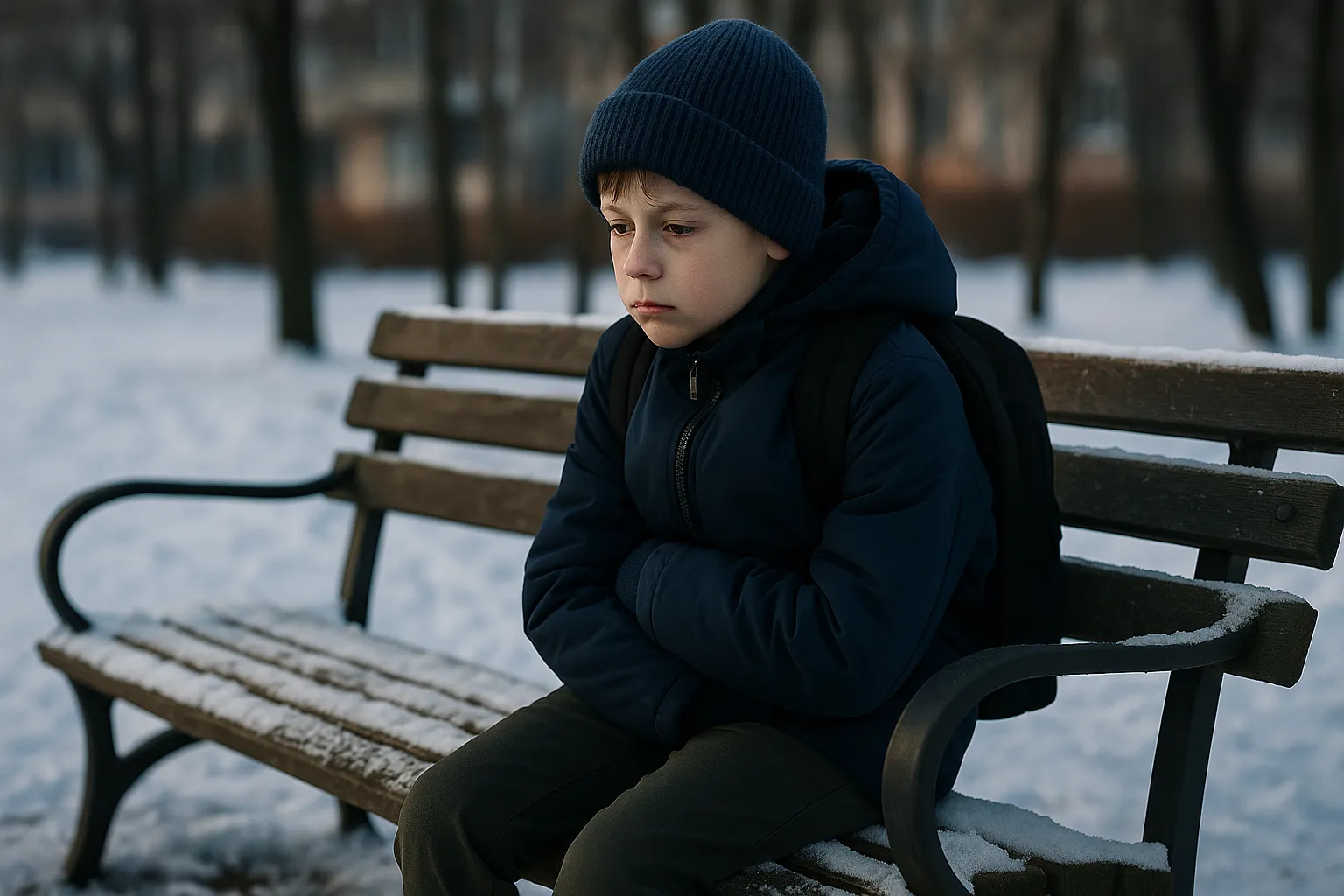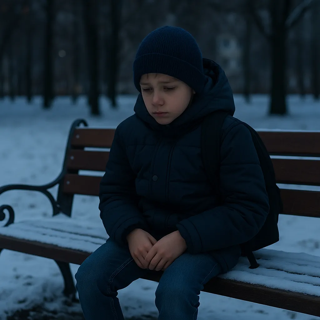 Коля сидел на холодной скамейке в парке, обхватив руками колени. Вокруг шумели деревья, мимо проходили люди, но ему казалось, что он совсем один в этом большом городе. В голове крутились мысли: “Что делать? Куда идти? Мама наверняка уже волнуется…”