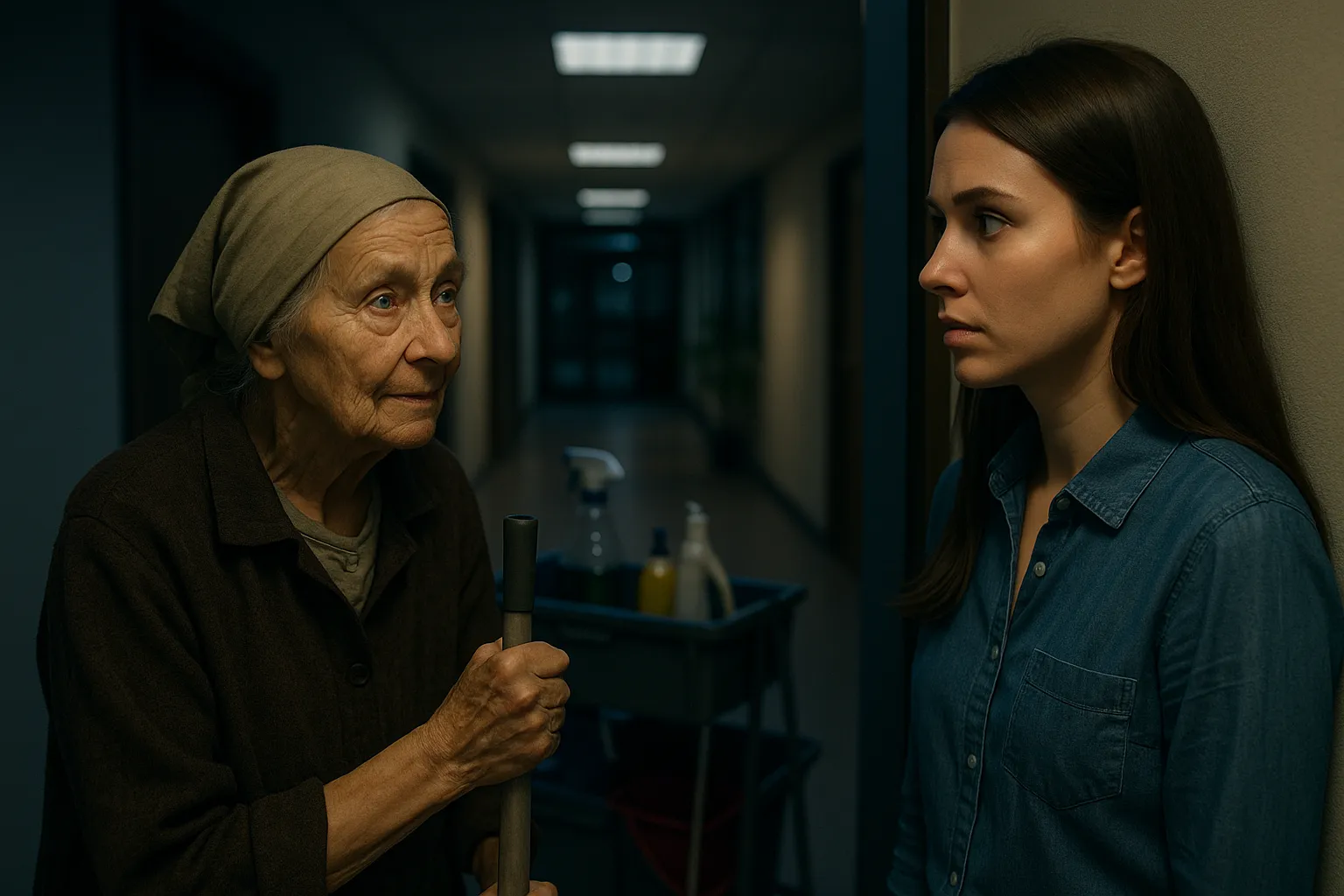 Она включила чайник и достала чашки, с удивлением заметив, что свет в коридоре включился. Странно, ведь все уже ушли. Марина выглянула и увидела пожилую женщину с тележкой, наполненной чистящими средствами — одну из уборщиц, которые обычно приходили поздно вечером, когда сотрудники уже разошлись.