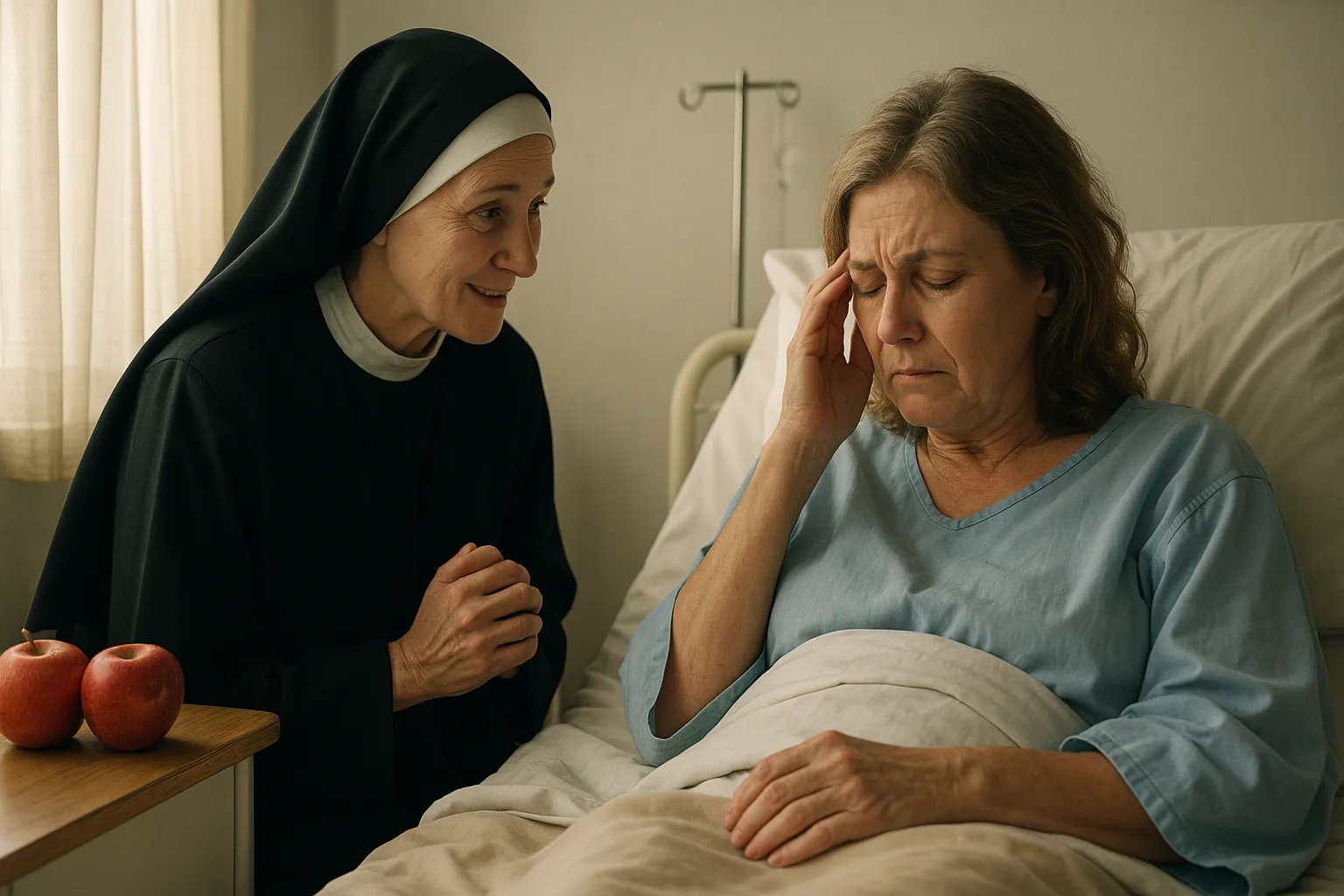 На следующий день мать и сын направились в паллиативное отделение. У входа они столкнулись с послушницей Валентиной.